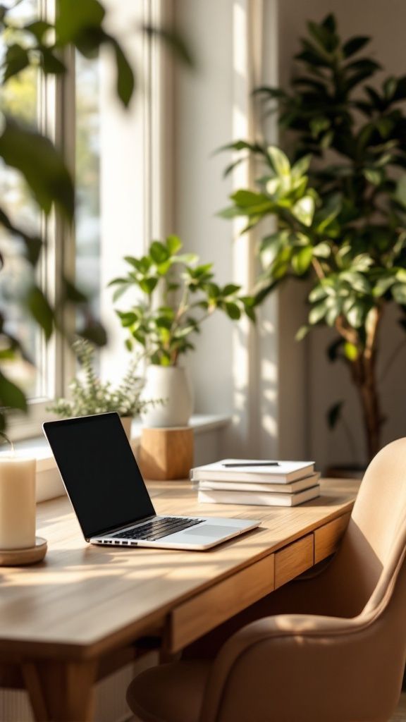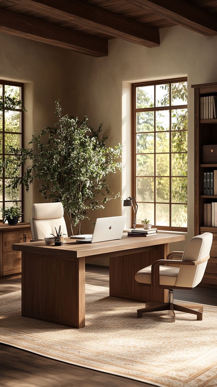 La lumière naturelle est idéale pour dynamiser l’espace de travail. En son absence, une lampe douce et chaleureuse permet de compenser. Ne pas hésiter à avoir plusieurs sources lumineuses pour adapter la luminosité en fonction de l'heure de la journée et de la météo. L’équilibre des éléments (bois, eau, métal, terre, feu) est également important pour créer une atmosphère harmonieuse et stimulante au bureau.